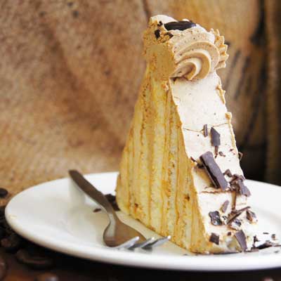 Een gebakje met een Hollandse oorsprong. Gevuld met crème gemaakt met echte koffie en een vleugje rum. Ouderwets lekker!